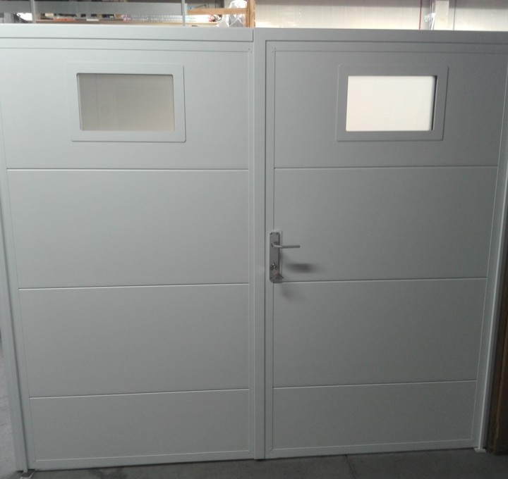 De Strijker vous propose un large choix de portes battantes à deux vantaux, équipées de panneaux sectionnels placés horizontalement ou verticalement. Elles sont disponibles dans toutes les couleurs (couleurs RAL ou sur échantillon). Vous pouvez également opter pour des panneaux habillés d’un film.